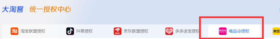 注意事项:调用唯品会相关接口,需在大淘客授权中心进行授权。