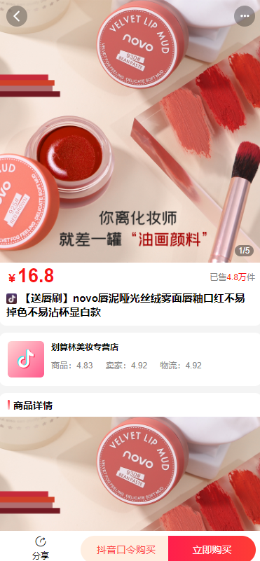 通过抖音商品链接,获取指定商品的详细数据(商品价格,优惠券信息,详情图,主图……)