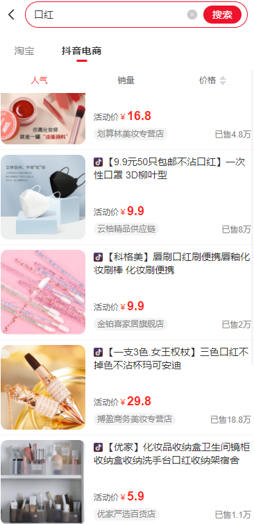 用于搭建和完善搜索页面,基于抖音精选联盟进行搜索