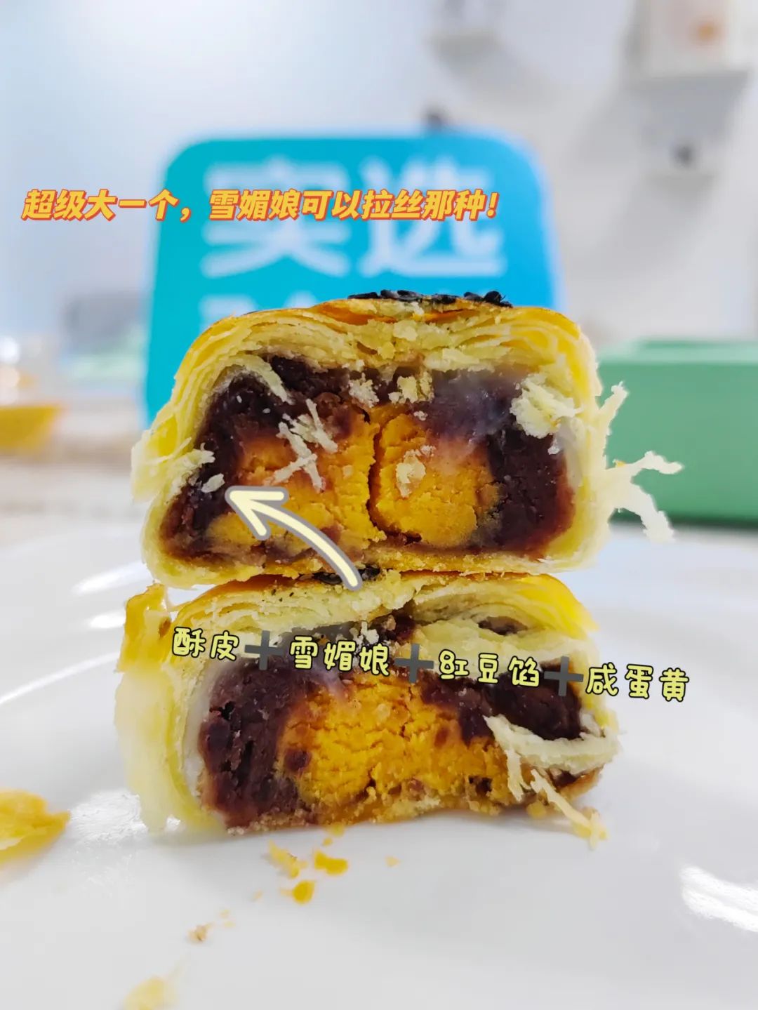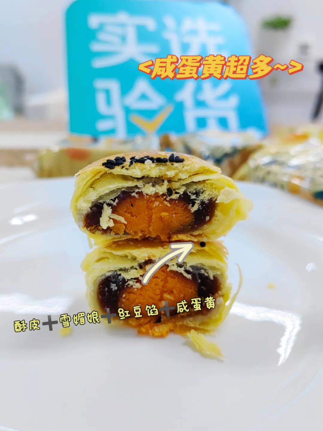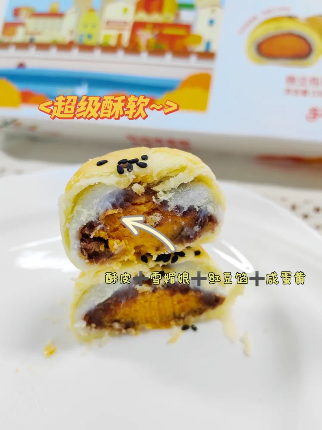 咸蛋黄很足!吃起来口感沙沙的不会咸;外皮稍微有些干,雪媚娘的料比较少,但是豆沙的料比较多,很甜!推荐喜欢甜食的朋友入手!
