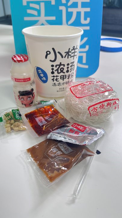 一杯的量刚刚合适,里面还有一杯小样乳酸菌很好喝!粉丝很好泡开,吃起来有嚼劲,花甲味的酱包味道有股浓浓的海鲜味,闻起来很香,整体吃起来不会很辣,又有花甲的香味很不错哟~