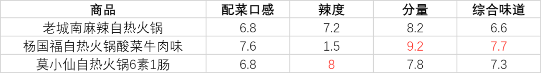 配菜口感、辣度、分量、综合味道