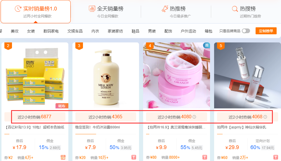 按照淘宝联盟模糊销量原则,【实时销量榜1.0】【全天销量榜】【细分类目榜】“销售件数”文案将替换为 “热销”文案,底层计算逻辑保持不变。