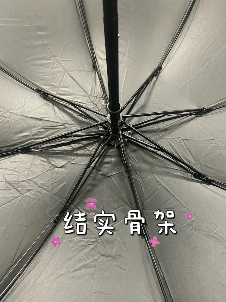 1)这款伞的伞布非常厚实且有质感,遮雨效果很好,内层是黑胶材质,遮阳效果也很不错,伞撑开非常大,可以两个人同时共用。