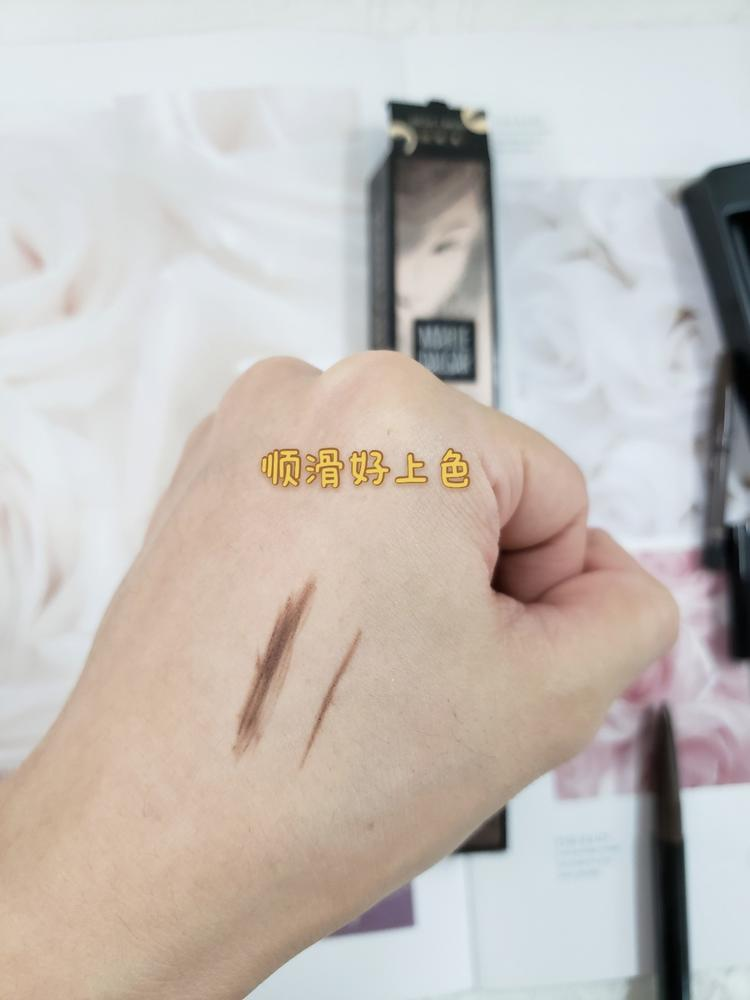 2)上色度:眉笔+眉刷的双头设计使用非常方便,扁圆笔头勾勒眉形和填充颜色都很顺手,轻轻一划就上色而且很顺滑~