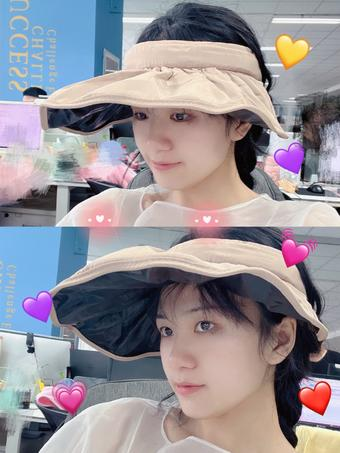 4)使用感受:帽子到手没有异味;戴上后头箍部分不重,也不会勒头;帽檐很大,基本脸上晒不到太阳,很安心!头大的姐妹也可以轻松使用;还赠送了防风绳,骑车戴也很合适!