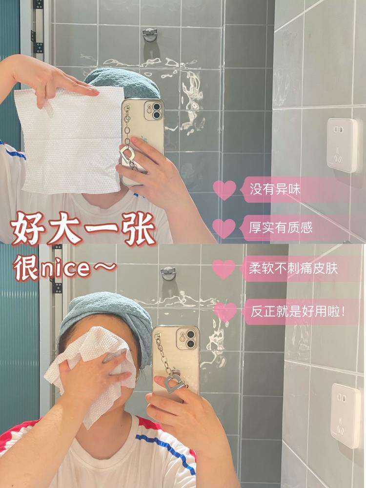 4、柔软亲肤,反复擦拭脸上残留,也不会变形掉絮絮;