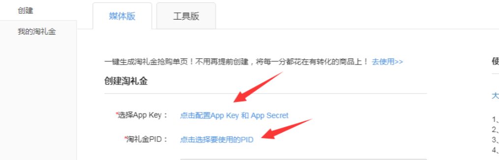 3、大淘客淘礼金工具媒体版创建淘礼金