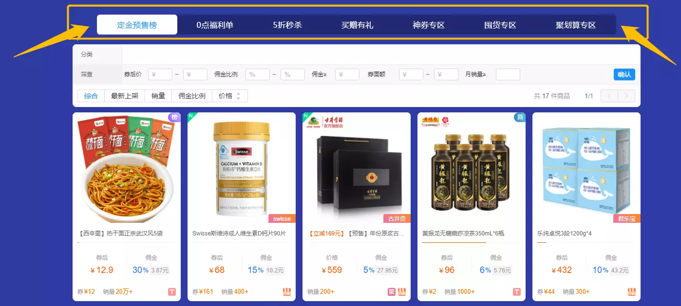 主推0点限时限量的商品,调动买家大促购买欲;人工精选前N福利单商品,商品活动信息更高效更准确。