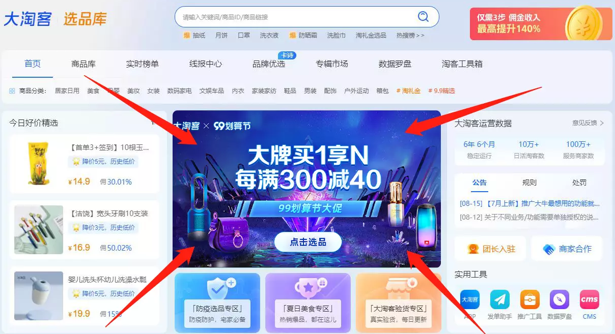 大淘客已提前为大家准备了活动专题及玩法攻略,方便活动期间更有效率的推广商品!冲冲冲~