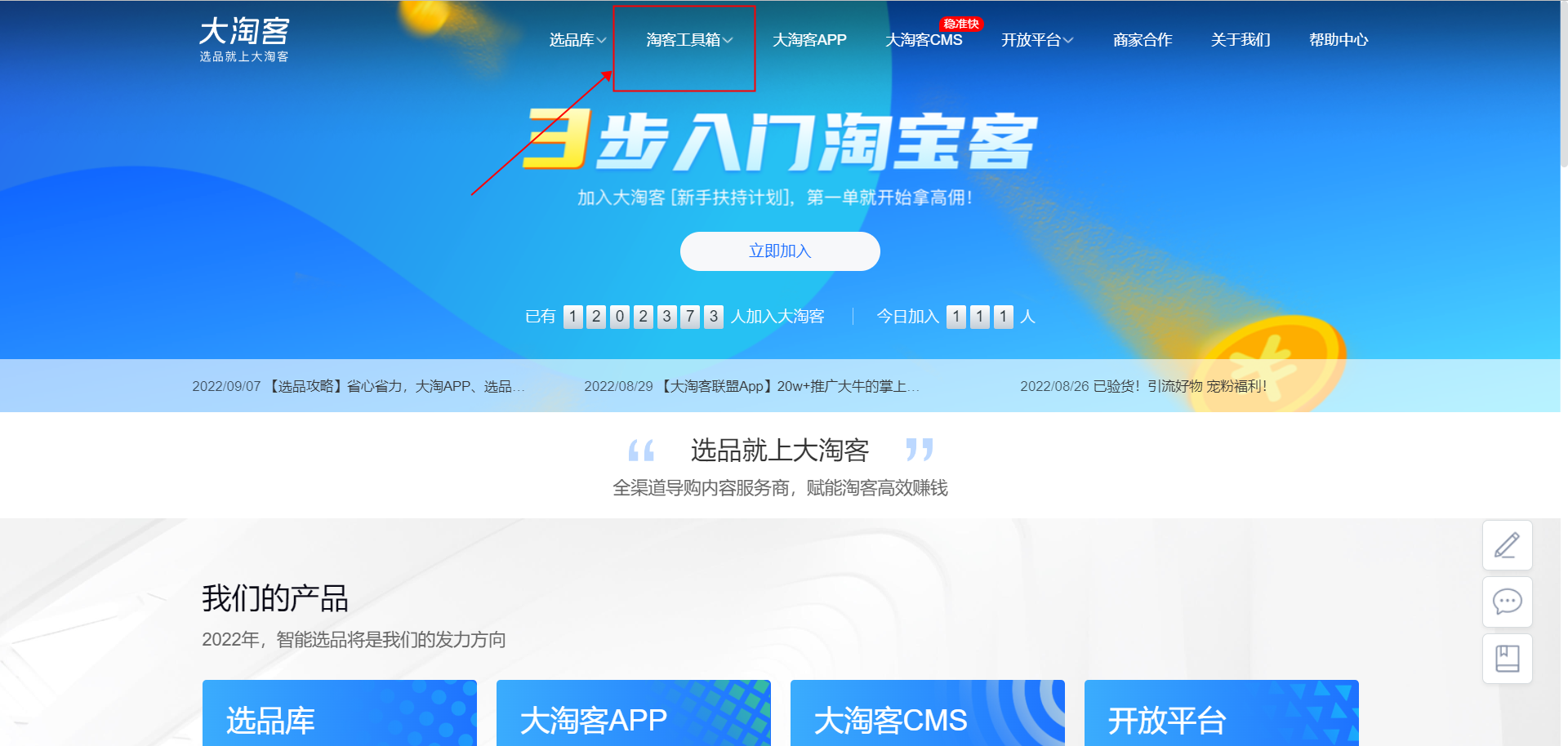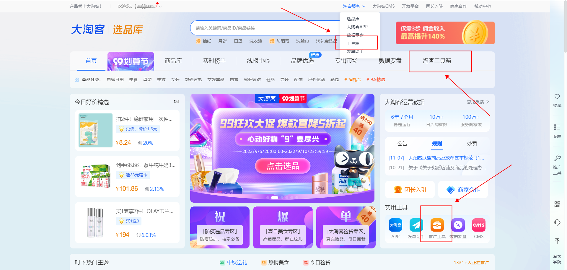二、大淘客工具箱入口