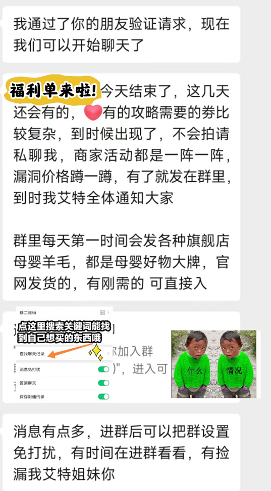 群里每天第一时间会发各种旗舰店母婴羊毛,都是母婴好物大牌,官网发货的,有刚需的可直接入