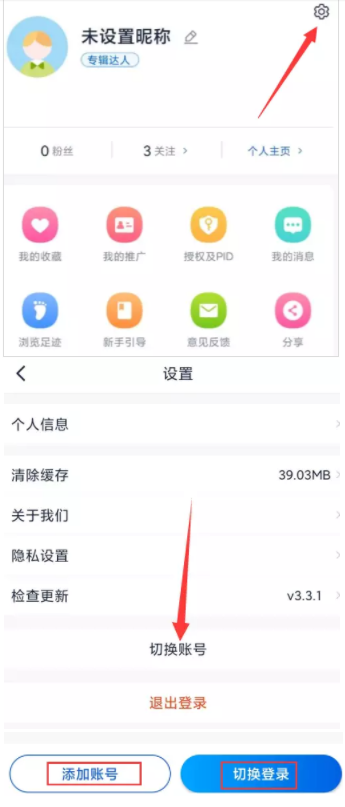 入口:我的→设置→添加账号→切换账号