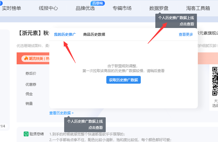 一、【PC官网】商品信息变动提醒、个人历史推广数据、批量添加pid