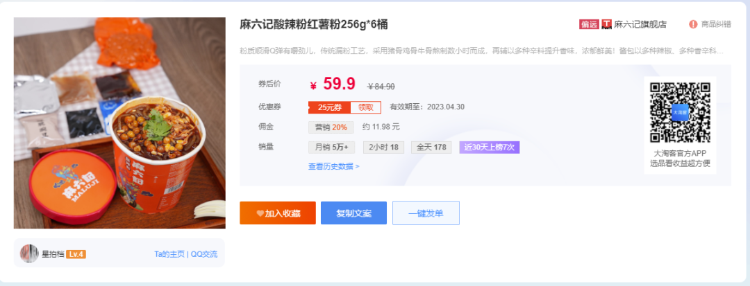 【券后价】59.9元 【佣金】20%