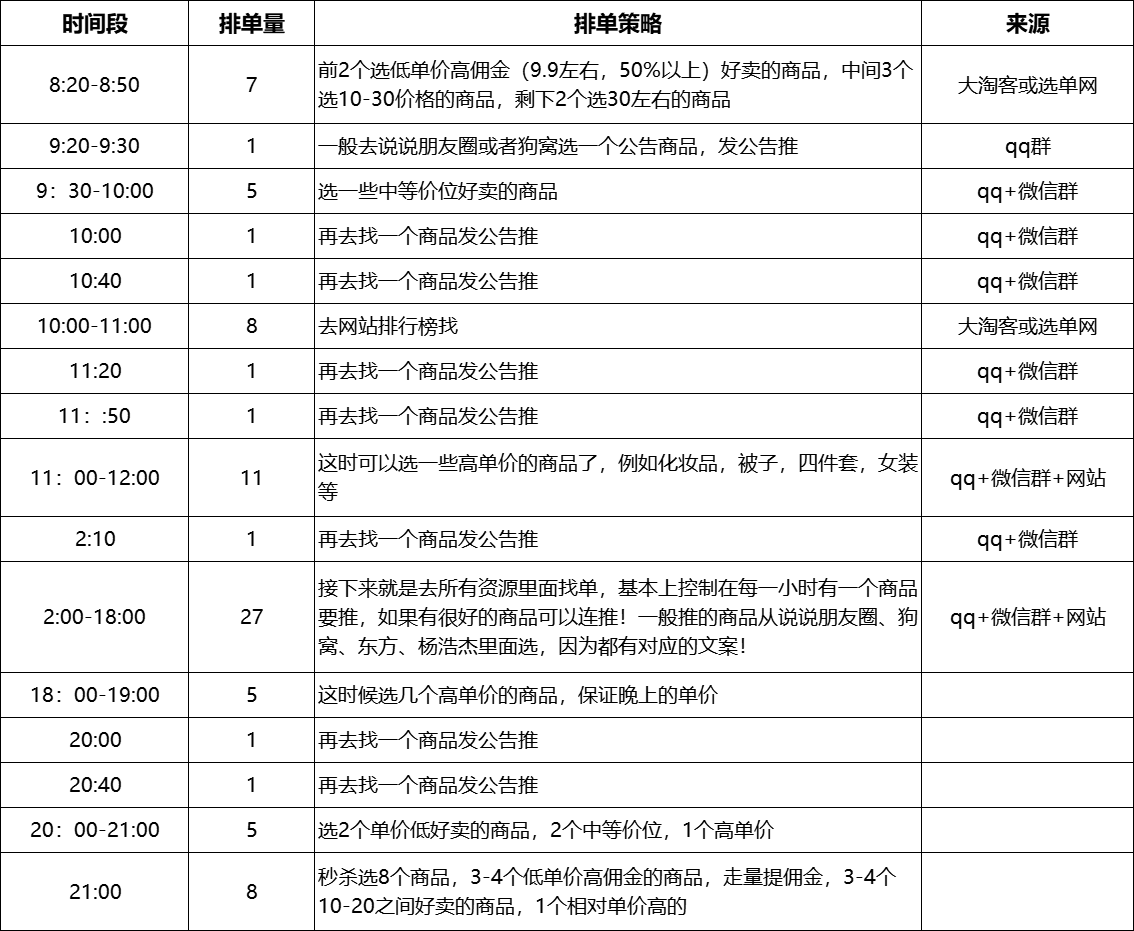 群内早上主要推一些佣金高单价低的;美食、零食等商品可以在11点、17点左右大家容易饿的时候发,这时候看到什么吃的都觉得好吃;贵的、利润大的商品可以放在晚上20-22点发,夜间控制理性的大脑额颞叶系统不活跃了,导致在晚上的时候容易冲动消费,控制不住想买买买;零点秒杀是后续加的一些策略,作用还挺大的,业绩直接提升10%-20%!!!