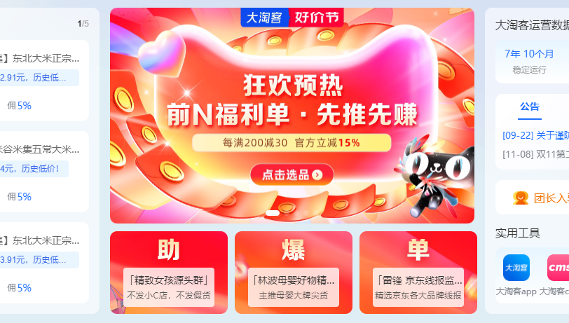 买赠商品在大促期间最能刺激消费者购买欲望,平台人工精选、核对、整理、编辑了商品活动信息,精选前N福利助力淘客朋友好价节推广。