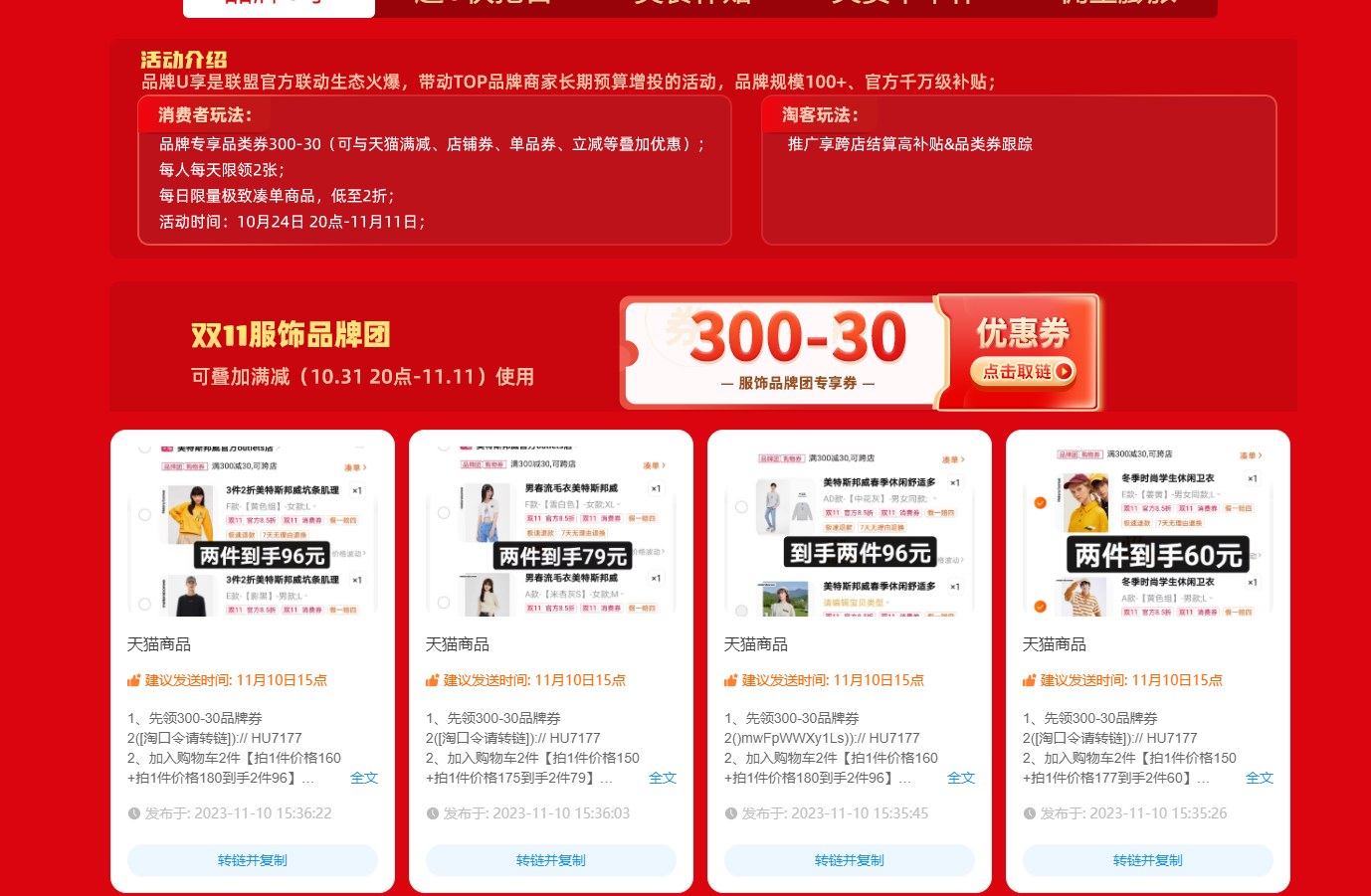 图为双11期间品牌团的玩法案例,可以作为推广参考