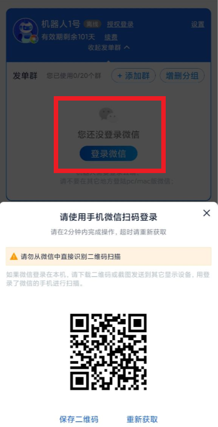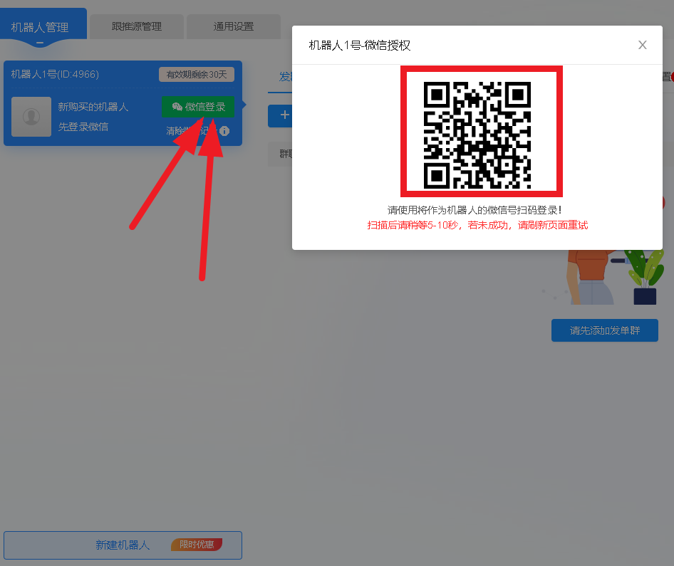 使用微信扫描二维码登录,扫描后稍等10秒左右。