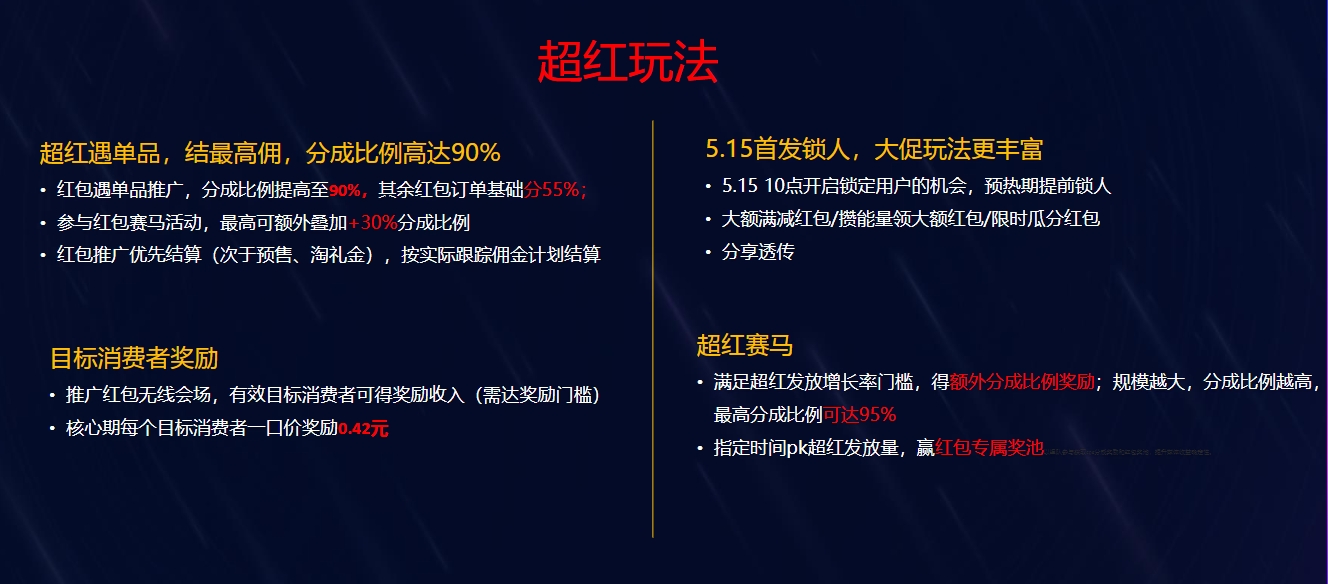 红包遇单品推广分成比例提升至90%,其余红包订单55%