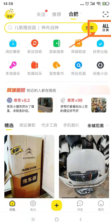 打开闲鱼APP,找到分类