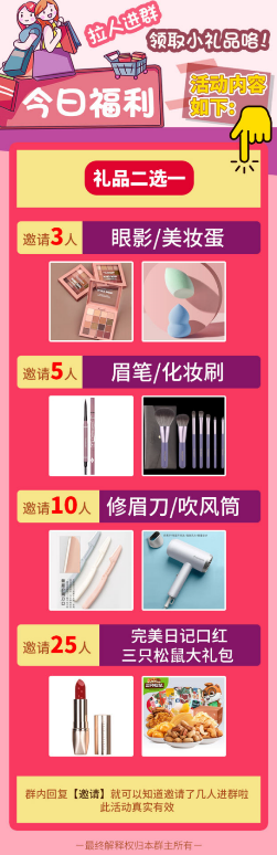 今天邀请好友进群,明天就可以兑奖啦!心动 不如心动!好友进群还可以参与阿玛尼口红的抽奖!口红今晚开!